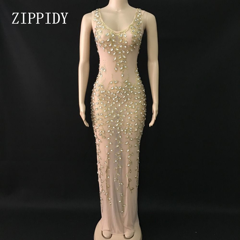 Grosshandel Shining Gold Strass Mesh Langes Kleid Damen Party Dance Stretch Outfit Langes Kleid Geburtstag Feiern Durchschauen Kleider Von Yangfan515 88 12 Auf De Dhgate Com Dhgate