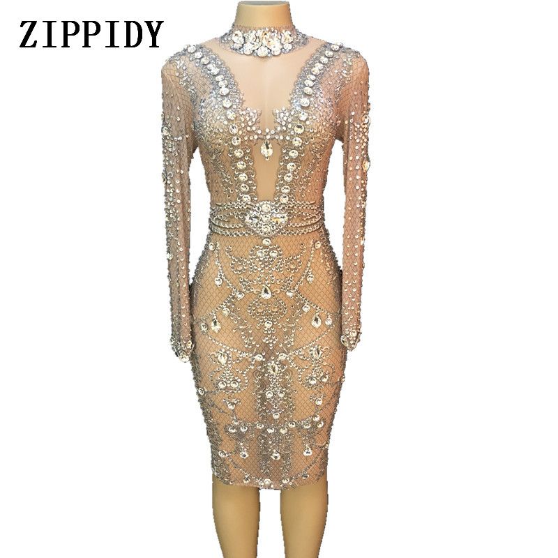 Grosshandel Sparkly Silver Crystals Mesh Dress Damen Abend Party Kleider Geburtstag Feiern Sie Kostum Sangerin Buhnenshow Kleid Von Easme 90 4 Auf De Dhgate Com Dhgate